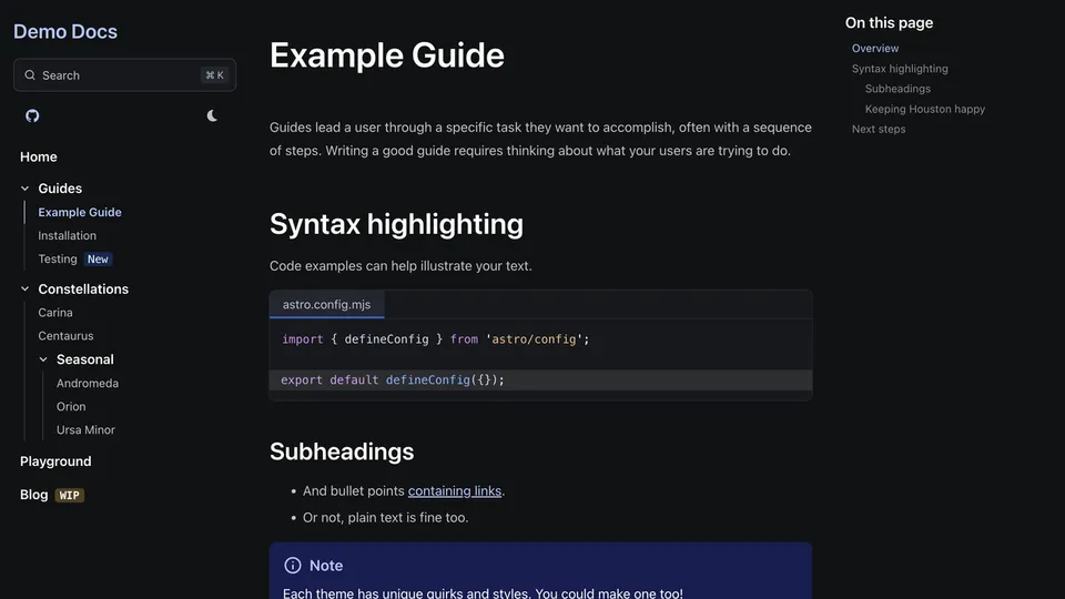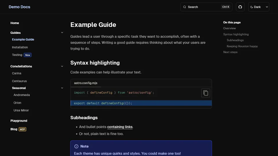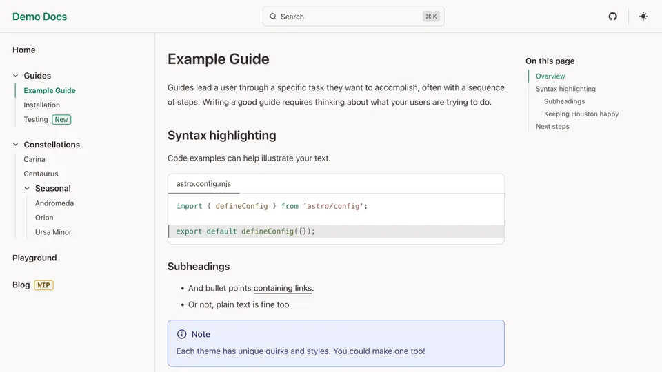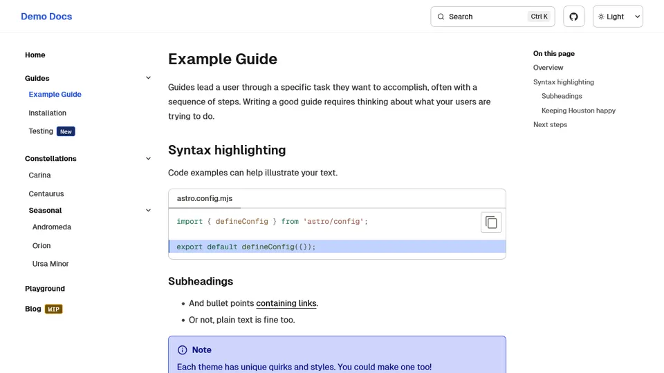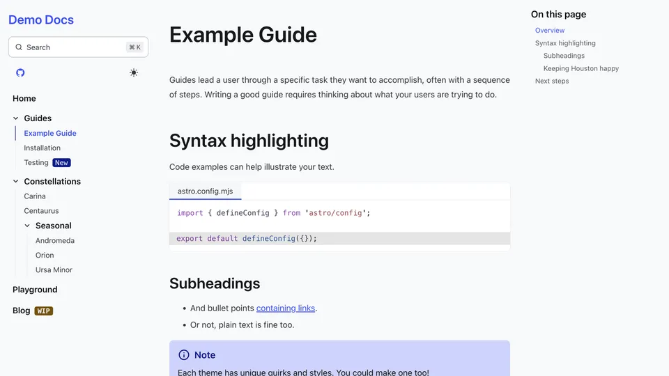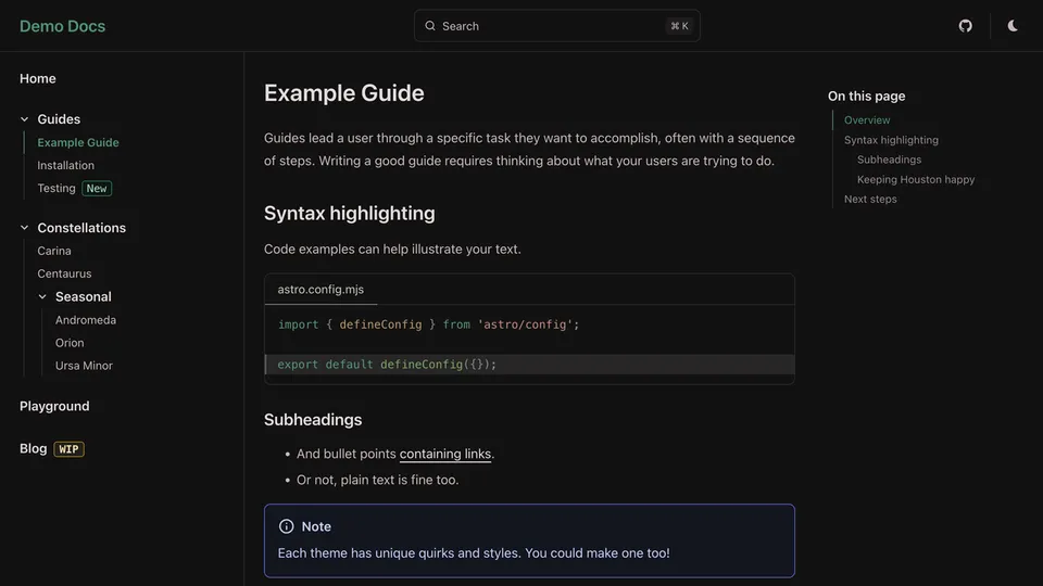主题是一个 Starlight 插件,它通过 自定义 CSS、组件重写 或其他新功能来改变网站的视觉外观。